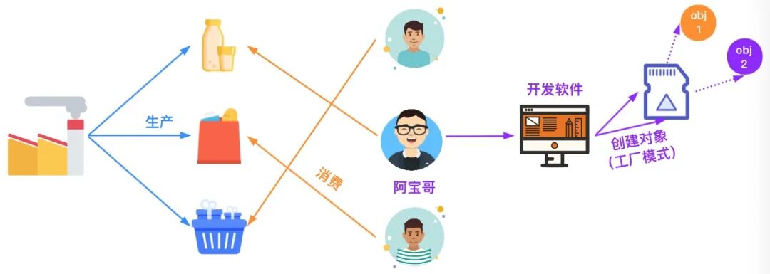 在上图中,阿宝哥模拟了用户购车的流程,小王和小秦分别向 BMW 工厂订购了 BMW730 和 BMW840 型号的车型,接着工厂会先判断用户选择的车型,然后按照对应的模型进行生产并在生产完成后交付给用户。