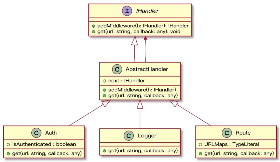 在日常的软件开发过程中,对于职责链来说,一种常见的应用场景是中间件,下面我们来看一下如何利用职责链来处理请求。